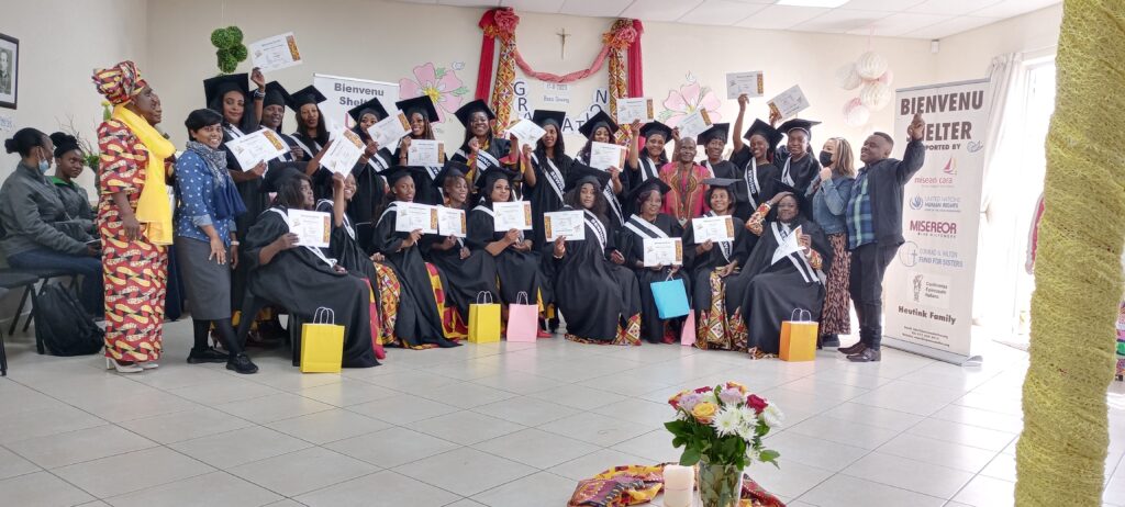 On August 17, 2023, we had twenty-two graduates from eight nationalities and majority are from the Democratic Republic of Congo, DRC. A couple of them were referred by the Pastoral Care for Migrants and Refugees Department, Archdiocese of Johannesburg, and ANOVA. The presence of representatives from PCMR, ANOVA, and Focolare Movement had enhanced the beauty of graduation ceremony.